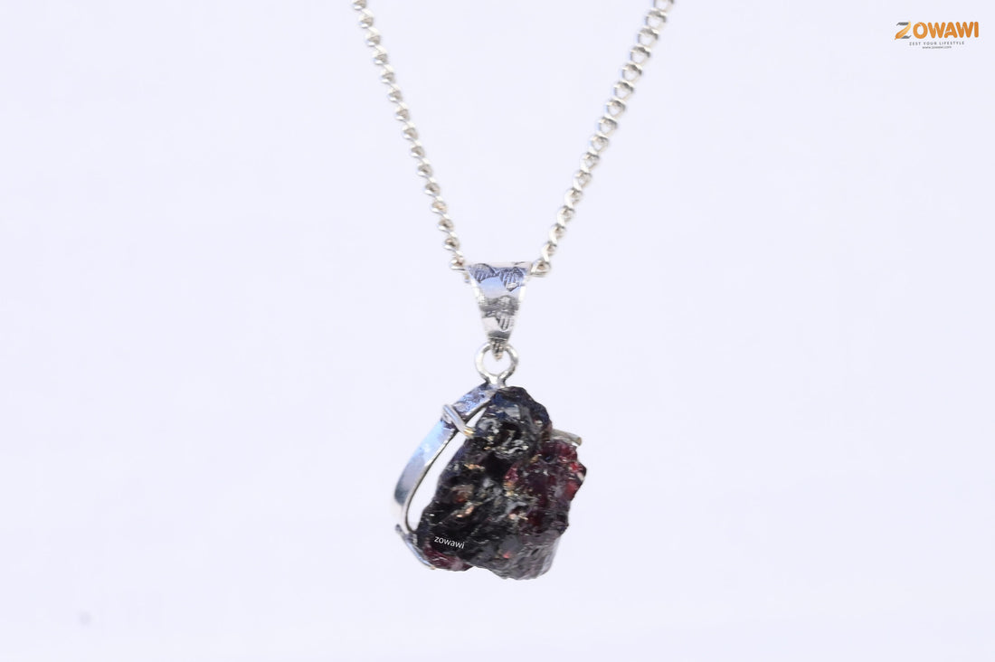 Natural Garnet Raw Unisex Pendant In Sterling Silver